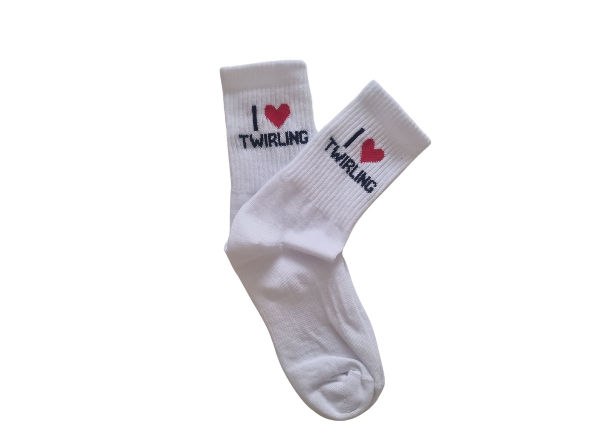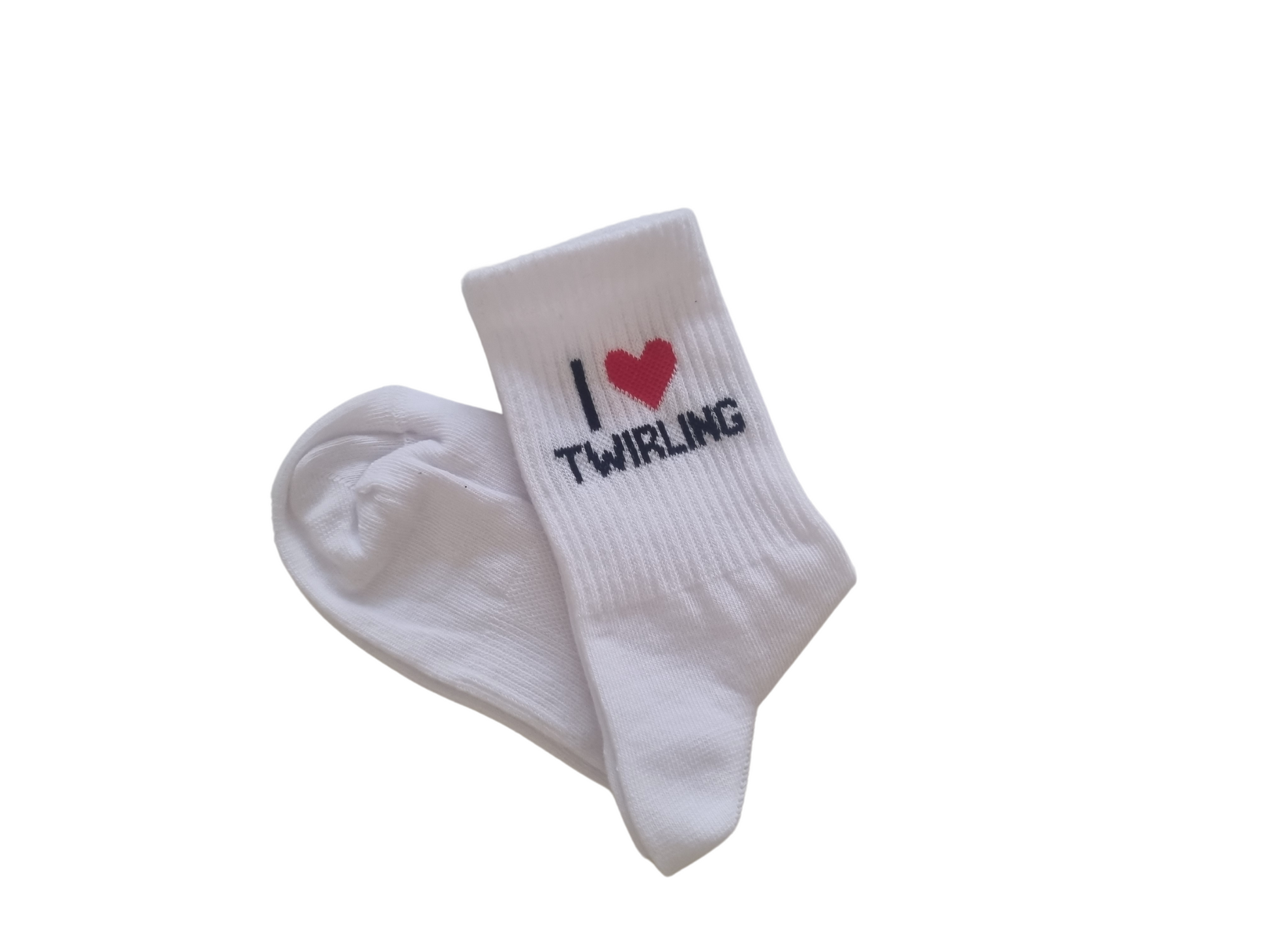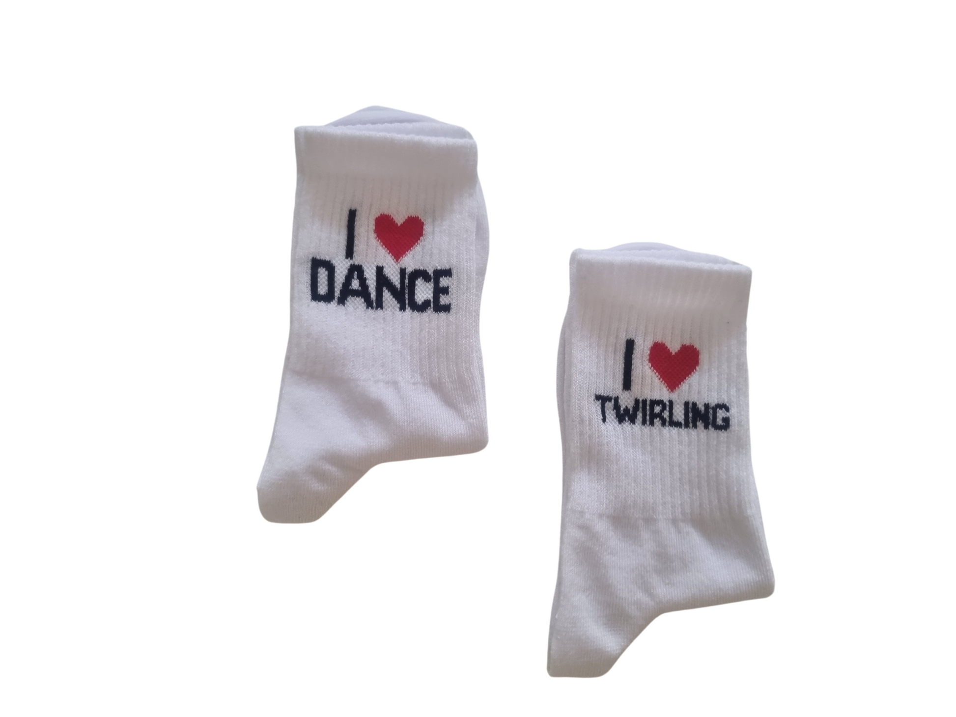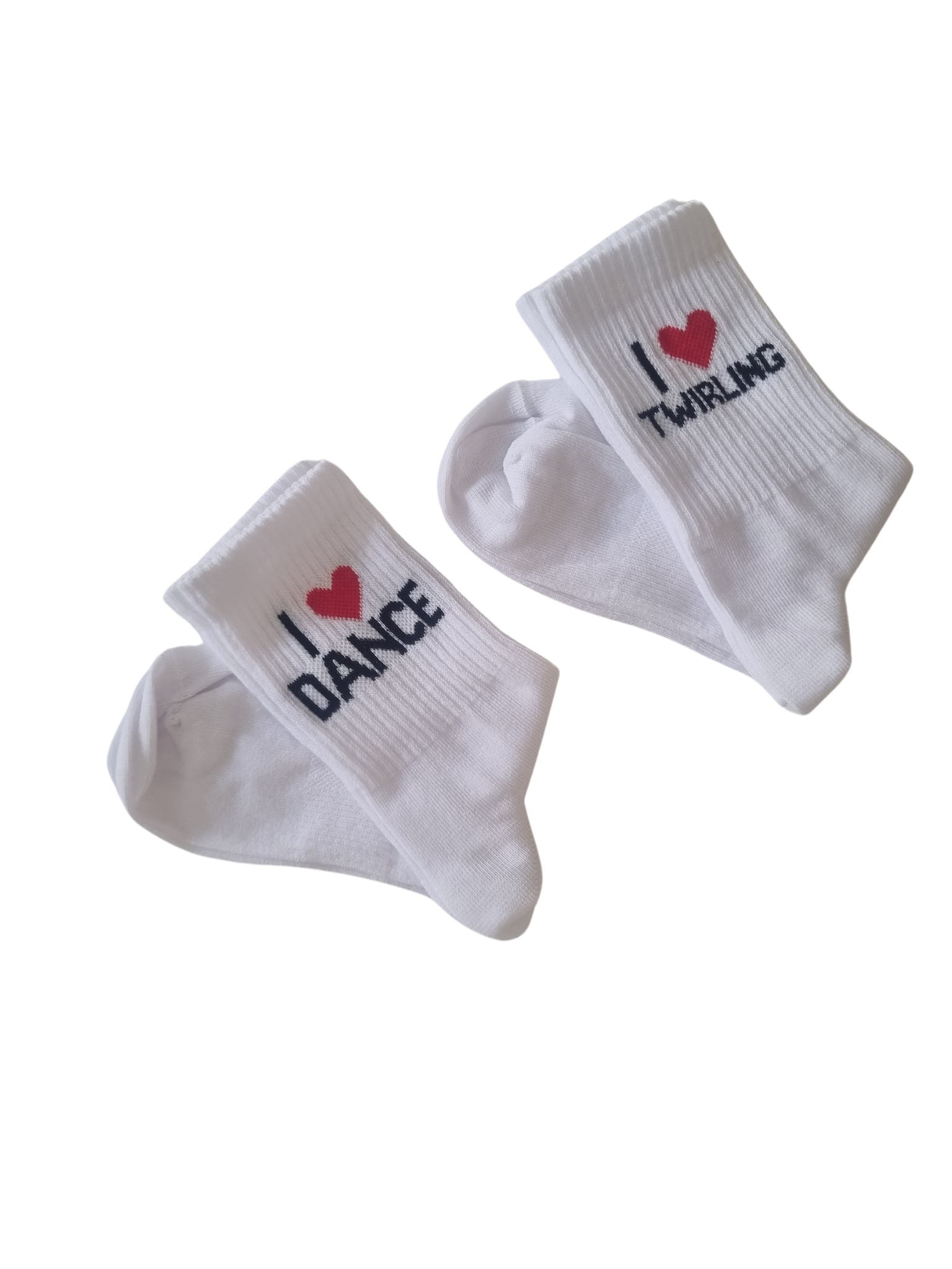 Udobne, športne visoke nogavičke s twirling/ plesnim motivom za treninge.